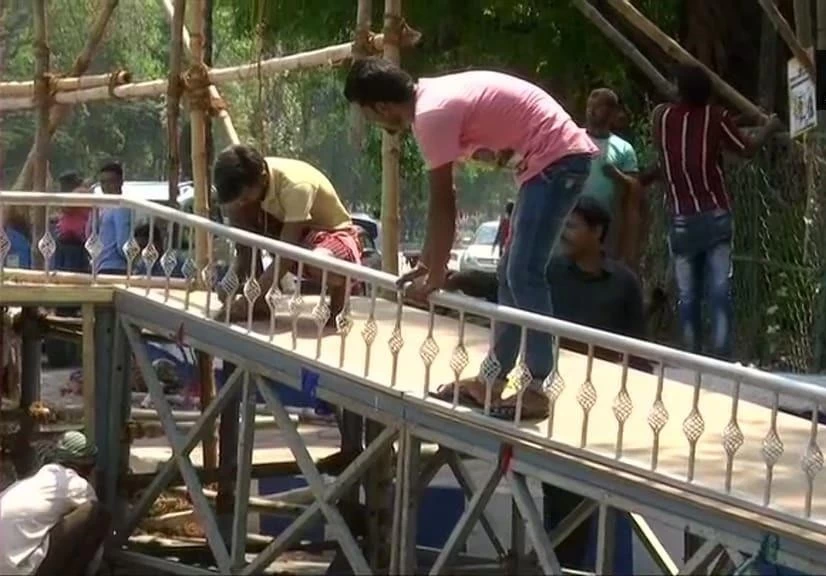 Kolkata: A special stage was set up for West Bengal Chief Minister and Trinamool Congress supremo Mamata Banerjee at Gandhi Murti in Kolkata from where she will conduct a roadshow on a wheelchair to Hazra.