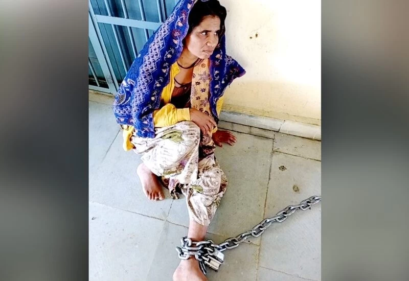 In Rajasthan, a heartbreaking incident has come out in Pratapgarh district. The young man of the village was suspected by the character of his wife and kept his wife from the last 3 months to 30 kg. On receiving the information about the police station, Ravindra Singh Beat Constable Nemichand and Shiv Singh reached the spot with his police force, the woman was found to be folded with iron chains. The police officer liberated the woman from the joiner and delivered the woman's own son.