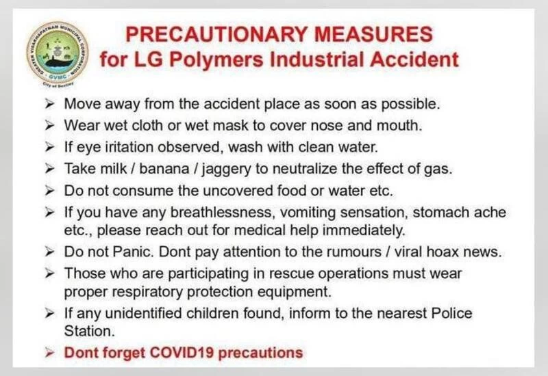 #VizagGasLeak Preventive measures pic.twitter.com/oFm2FrGvbt