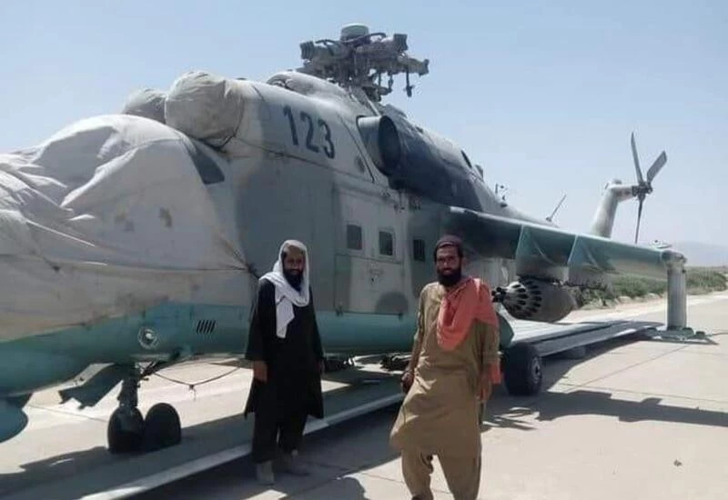 In pictures and videos circulating on social media, Taliban cadres can be seen standing next to a Mi-24V attack helicopter with the serial number 123.