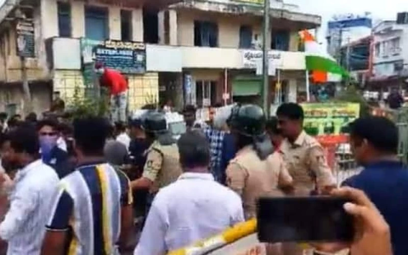 Shivamogga : A poster of Veer Savarkar created a ruckus in Shivamogga, Karnataka. Some Muslim youths started opposing this poster put up by Hinduist organizations on the occasion of Independence Day. After this, the Karnataka Police has imposed restrictions in some parts of the district. Hindu organizations have started a demonstration to remove the picture of Savarkar.