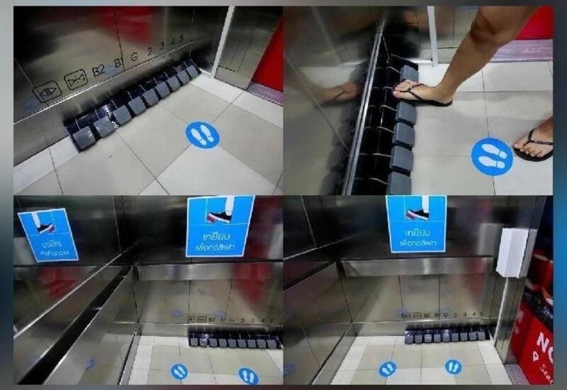 Customers at Bangkok’s Seacon Square were surprised and confused this week to find pedals in front of the elevators and inside, but they welcomed the new hands-free enhancement as a smart move to stay healthy.