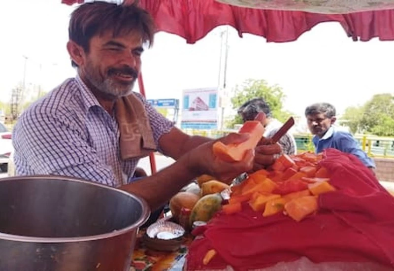 Barmer temperatures crossed 43 degrees on Sunday. Due to this, people had to suffer due to heat. People are resorting to cold drinks to escape the heat. To escape the heat, people are leaving with a cloth tied over their mouths. Due to the scorching heat, some people have used public places like this every time in major places of Barmer city.
