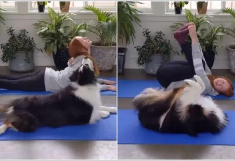 You must have seen humans doing yoga a lot, but have you ever seen an animal doing yoga like humans at all? Yes, a similar video is going viral on social media in which a dog is doing yoga with a young woman. Surprisingly, whatever posture of a young woman does yoga, the dog is also seen doing the same easy. This video has become increasingly viral on social media and people are very fond of it.