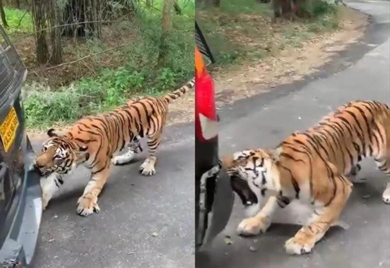 Bengaluru: A video of a Bengal tiger pulling a safari vehicle in Bannerghatta National Park in Bengaluru has gone viral on social media.
