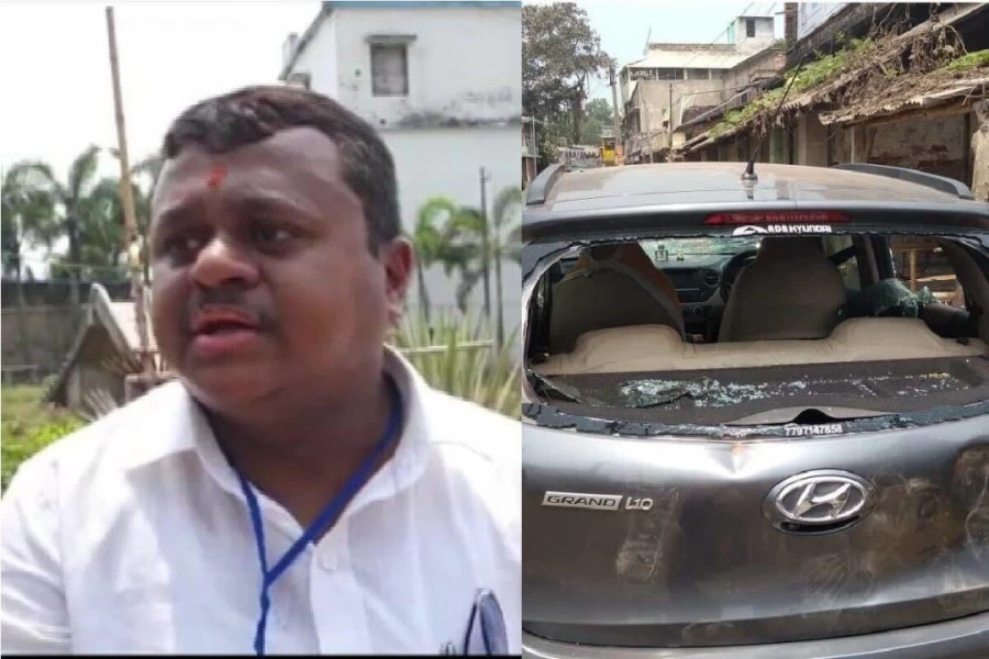 Purba Medinipur: Bharatiya Janata Party (BJP) leader Suvendu Adhikari's brother Soumendu Adhikari's vehicle was attacked by miscreants at Sabajput area in Contai and his driver was thrashed allegedly by Trinamool Congress (TMC) members, as polling for the first phase of West Bengal assembly elections is underway.