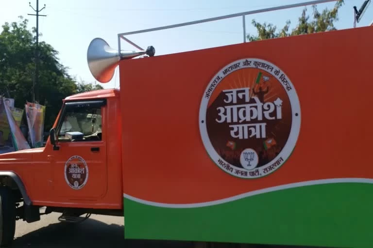 The logo of 'Jan Aakrosh Yatra' has been put on the chariot. Wrote "Jan Aakrosh Yatra against Jungle Raj, Corruption, Misrule of Congress Government of Rajasthan".