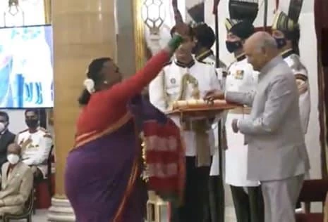 President Ram Nath Kovind handed over the award at the 2021 Padma awards ceremony at Rashtrapati Bhavan.