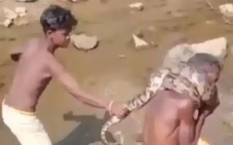 When son Nitish reached running away, the python had strengthened its grip. The father himself was trying to escape from the clutches. The 14-year-old son yearned to save his father. As much as he was trying to get rid of, the dragon was getting stronger and stronger. After about 15 minutes of effort, the son was able to rescue the father from the clutches of the python. Now more than playing with the life of the father, the courage of the son is being talked about.