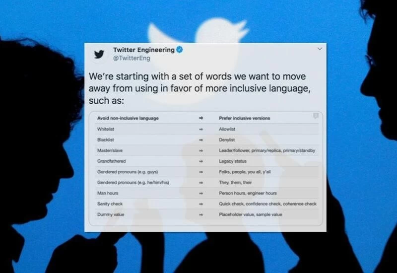 The company's engineering division tweeted out a set of words that it wants "to move away from using in favor of more inclusive language." The list includes replacing "whitelist" with "allowlist," "master/slave" with "leader/follower," and "grandfathered" with "legacy status."