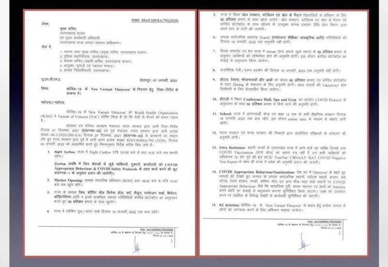 According to the guidelines, all shopping malls, gyms, cinema halls, spas, saloons, entertainment parks, theatres, sports institutions, stadiums, playgrounds, auditoriums, and eateries will remain open with 50% capacity, while swimming pools and water parks will remain closed till January 16.