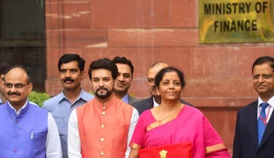 Finance Minister Nirmala Sitharaman will shortly announce her first budget, in which she is expected to raise spending and cut taxes on business to shore up the economy after a five-year low. Nirmala Sitharaman, India's first full-time woman finance minister, began the big day by ditching the British-era briefcase for a red cloth folder enclosed with a string and emblazoned with the national emblem.