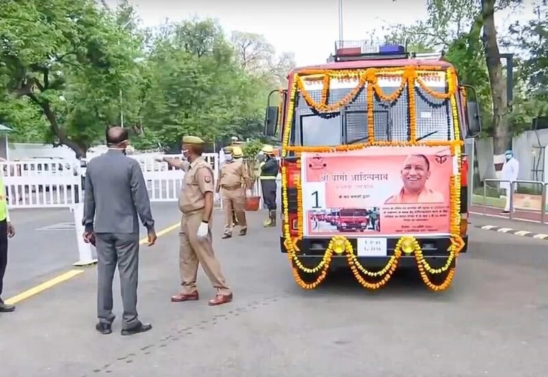 CM Yogi waved a green flag to launch the fire tenders here during an event.