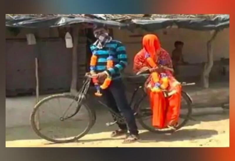 Deciding not to cancel his wedding due to the lockdown, the 23-year-old man kept his marriage date and pedaled 100 kilometers on a bicycle to reach his bride’s home. And, he brought back his newly-wed wife on the bicycle too.