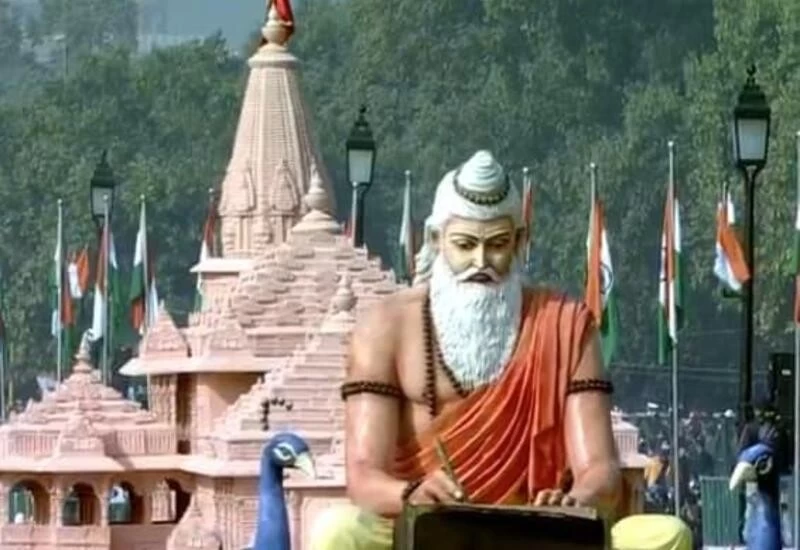 In the first part of the tableau, Maharishi Valmiki has been shown composing the Ramayana. In the middle part of the tableau, Shri Ram Mandir, the epitome of Ayodhya's cultural identity associated with mass sentiments and devotion, was featured.