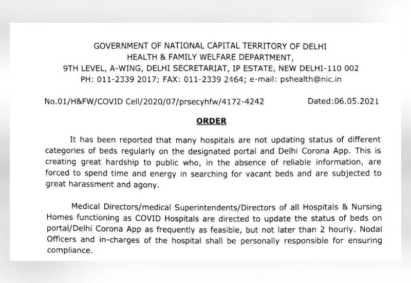 It read: “It has been reported that many hospitals are not updating the status of different categories of beds regularly on the designated portal and Delhi Corona App. This is creating hardship to the public who, in the absence of reliable information, are forced to spend time and energy in searching for vacant beds and are subjected to great harassment and agony.”