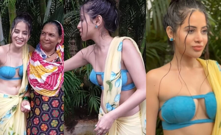 Urfi Javed recently got down from her car and then started giving Eid sweets to the people. This video of Urfi is becoming increasingly viral on social media. Urfi was wearing a sari on the occasion of Eid but she was wearing such a bold blouse with sari that people were blown away. Urfi was wearing a blue colored strapless blouse and paired it with a blue colored sari. As you can see in this video, Urfi posed with people and even called a woman and got her to click a picture with them.