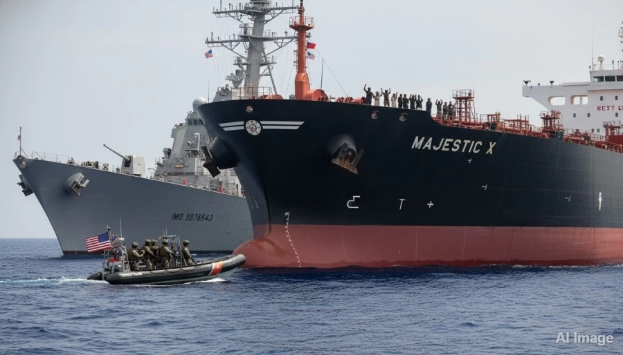 The US Department of Defense released a video of the ship's seizure, showing American soldiers on the deck of the vessel. The ship was reportedly en route to Zhoushan, China. Data monitoring ship movements revealed that 'Majestic X' was positioned in the Indian Ocean between Sri Lanka and Indonesia. This location is approximately the same area where the US military had previously seized the oil tanker 'Tiffany'.