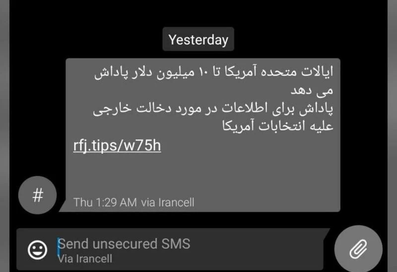 Sadra Momeni, a developer who works out of the Iranian city of Qom, compared the texts to propaganda leaflets dumped out of the back of an aircraft. He said he initially thought the message was a scam; it was only when he opened the link that he realized that the United States was genuinely soliciting tips about election hacking via text message.