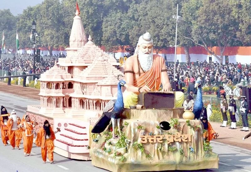 The grand bedecked tableau of Uttar Pradesh, which depicted sage Maharishi Valmiki composing the epic Ramayana seated in front of the proposed Ram temple model on the rear side, caught the attention of the whole country during the parade.