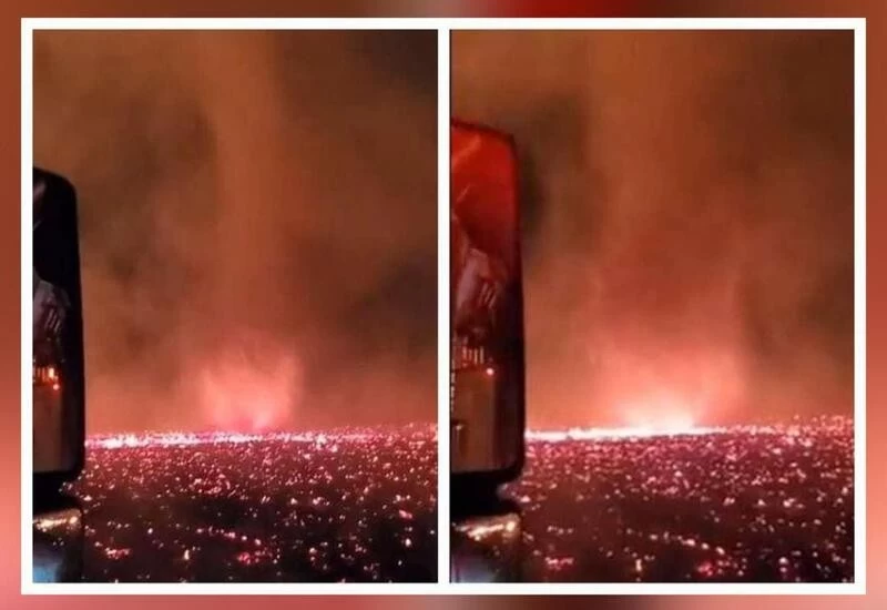 California: As multiple US states continue to struggle with unprecedented wildfires, a video from the state of California is giving the internet goosebumps. In the video posted on September 12, one can see a unique fire tornado or ‘Firenado’ raging through huge patches of burning land as firefighter rush to dose it. The video seems to have been shot near a fire truck with its siren blowing.
