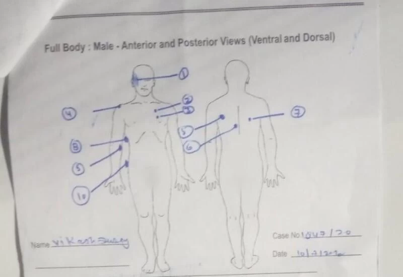 According to the post-mortem report, three bullets pierced through his body. There were ten injuries on the body. The first bullet struck his right side shoulder and two others at his chest on the left side.
