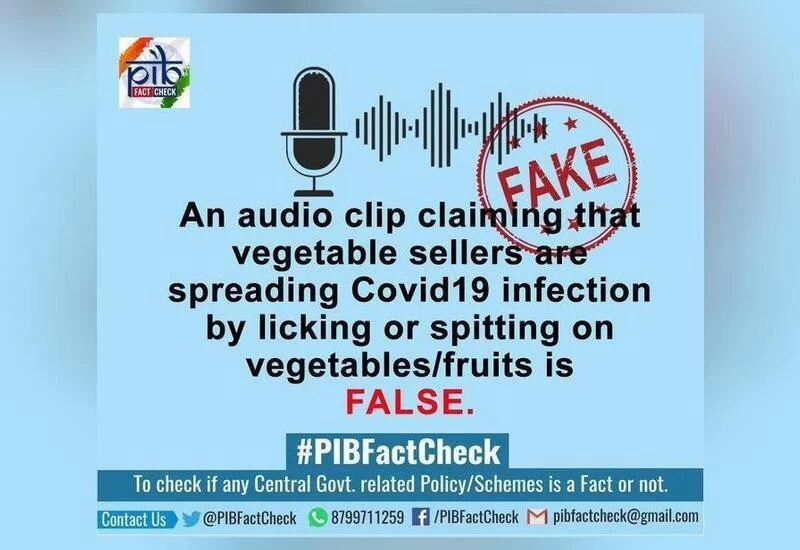 “A viral audio clip is circulating on social media claiming that vegetable sellers are spreading #Covid19 by licking or spitting on vegetables/fruits,” the agency tweeted. “The claim made in the audio clip is false and intended to create disharmony in society,” they added.