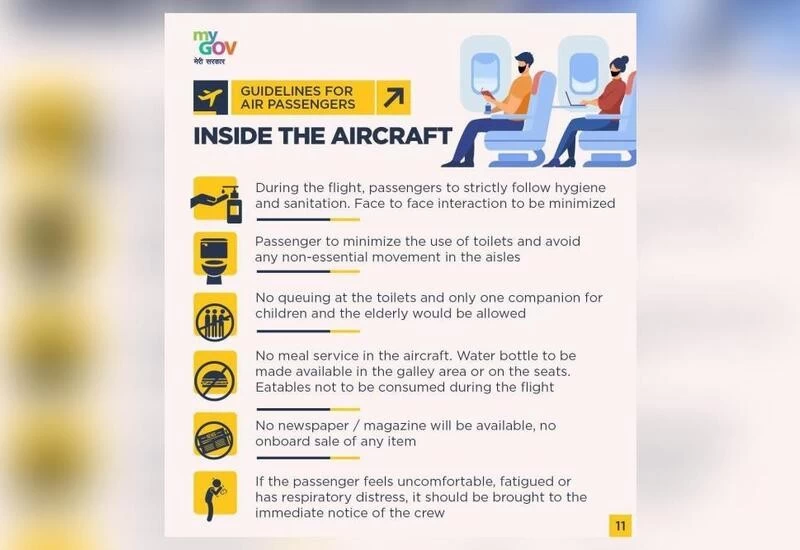 • Passengers must strictly follow hygiene and sanitation inside the aircraft. Face to face interaction to be minimised.