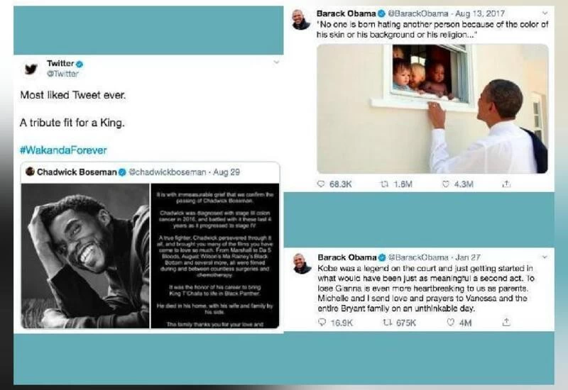 Washington: The tweet announcing the death of the actor Chadwick Boseman surpassed six million on Saturday night, becoming the most-liked tweet on the social media platform by far.