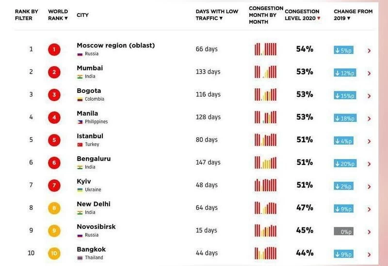 Among the 416 cities spread across 57 countries, India capital New Delhi fares slightly better at the eighth position in the pandemic year. However, thanks to the COVID-19 induced lockdown, there has been an improvement of 20% from 2019. In 2019, the same index had found Bengaluru to be the worst among 416 cities.