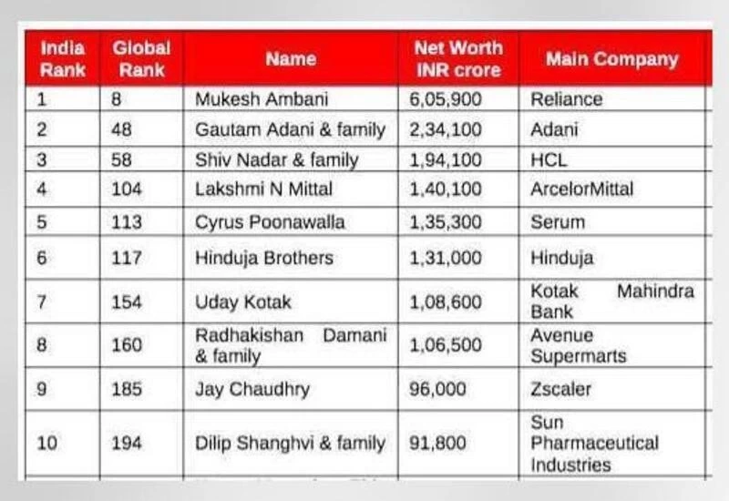 Other billionaires in India include Shiv Nadar and family, whose wealth grew by $10 billion to reach $27 billion last year and Narayana Murthy, who saw an increase in wealth by 35 per cent to $3.1 billion. Pankaj Munjal and the family of Hero Cycles debuted on the list with a valuation of $1.2 billion. The report attributed his wealth to the surge in demand for e-bikes in India.