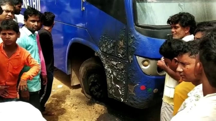 There were around 40 passengers onboard the bus during incident. Eleven passengers were injured by electric shots and the tyre of bus caught fire.