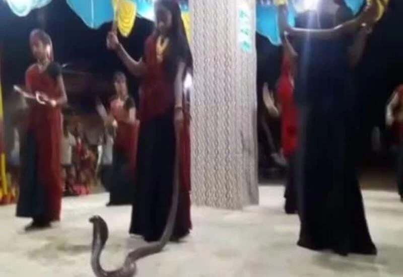 Junagadh: Two women and a girl were held along with two others after a video showed them performing garba dance with snakes in their hands in Junagadh district of Gujarat, an forest department official said on Saturday.