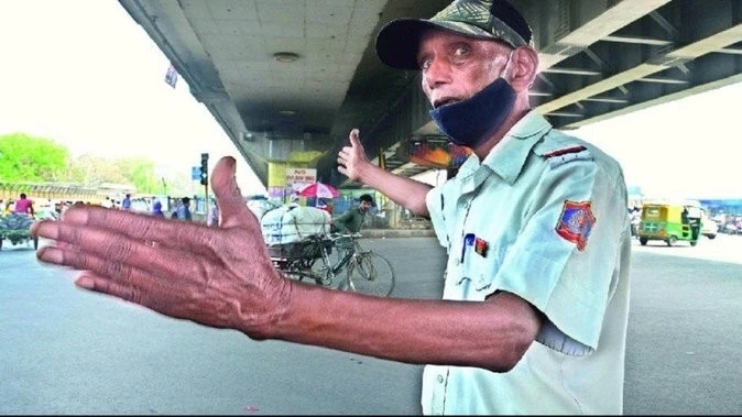 Gangaram's age is 75 years. There are wrinkles in the body. Shortness of breath too. Recently had cataract surgery. Still, he stood on the front. The process of handling traffic at Seelampur Chowk is 32 years old. Beginning amateur. An accident gave him the purpose of life.