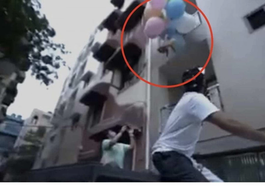 He then nudges the dog to run, saying it will fly up in the air if it runs. A woman too is seen holding the pet. Guarav says they have tied two more balloons to it and that this could make it float. In moments, the dog is seen floating away before the woman manages to catch hold of it.