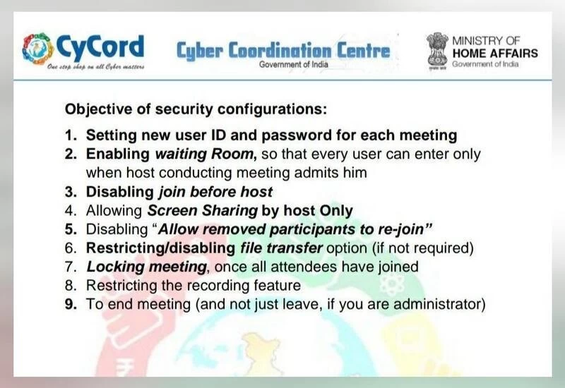 "Most of the settings can be done by login into users zoom account at website, or installed application at PC/Laptop/Phone and also during conduct of conference. However certain settings are possible through certain mode/channel only," the guidelines from the Union home ministry read.