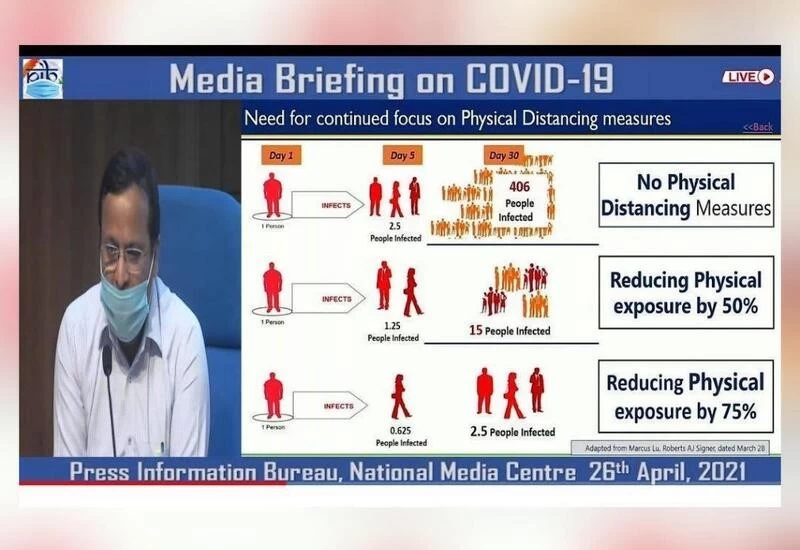 स्वास्थ्य विभाग ने कहा कि अनुसंधान से पता चला है कि अगर सामाजिक दूरी का अनुपालन नहीं किया गया तो एक व्यक्ति 30 दिनों में 406 लोगों को संक्रमित कर सकता है. सरकार ने अस्पतालों से कहा कि न्यायोचित तरीके से ऑक्सीजन का इस्तेमाल करें और इसकी बर्बादी रोकें.