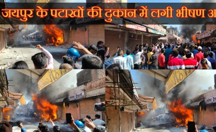 जयपुर। राजधानी जयपुर (Jaipur) के हदृयस्थल पर स्थित इन्द्रा बाजार (Indra Bazaar) में शनिवार दोपहर को भीषण आग (Fierce fire) लग गई। आग की चपेट में करीब एक दर्जन दुकानें (Shops) आ गईं। आग की चपेट में पटाखों की दुकान (Firecrackers Shop) होने से वहां धमाके (Blast) शुरू हो गए हैं और आग लगातार फैलती जा रही है। आग को काबू करने के लिए करीब डेढ़ दर्जन दमकलें जुटी हुई हैं। आग बुझाते समय एक दमकलकर्मी भी घायल (Injured) हो गया। उसकी हालत गंभीर बनी हुई है।