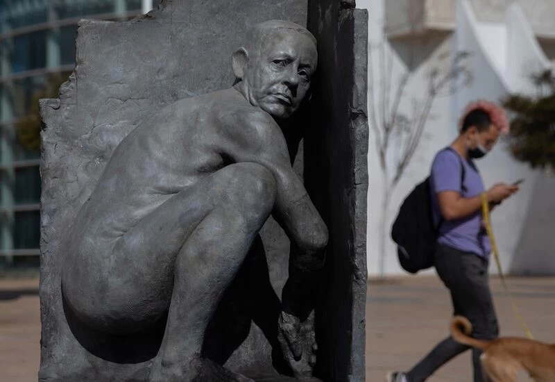 इज़राइल के प्रधान मंत्री बेंजामिन नेतन्याहु को हबीमा स्क्वायर में अवीव शहर में पाया गया है। इजरायली मीडिया जेरूसेलम पोस्ट की रिपोर्ट के मुताबिक, यह कांस्य प्रतिमा इजरायली पीएम स्क्वाट्स की मुद्रा में बैठी है। पुलिस इस मामले की जांच कर रही है। इस मूर्ति पर पांच मीटर लंबा और छह टन 'इजरायल हीरो' लिखे गए थे। हालांकि, यह उस कलाकार से अवगत नहीं है जिसने इस मूर्ति को बनाया है। इस मूर्ति को बिन्यामीन के खिलाफ विरोध के रूप में देखा जा रहा है। आइए बताएं कि इज़राइल के प्रधान मंत्री अगले सप्ताह की तैयारी में लगे हुए हैं।