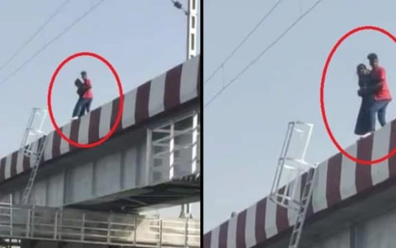 राजस्थान के चित्तौड़गढ़ जिले में कल्याणपुर नदी पर बनी रेलवे पुलिया पर चढ़कर प्रेमी-प्रेमिका ने कूदने की कोशिश की। प्रेमी ने कई बार प्रेमिका को उठाकर नदी में कूदने का एक्शन किया। इस ड्रामे को देखकर आसपास लोग बचाने के लिए खड़े हो गए। नदी में गोताखोर आ गए। ट्रैक पर दोनों ओर से लोग आगे बढ़ते चले गए और आखिर में कुछ लोगों ने किसी तरह उन्हें रेलवे ट्रैक से दूर किया। मामला निम्बाहेड़ा कस्बे का है। कपल का यह हाईवाल्टेज ड्रामा करीब डेढ़ घंटे तक जारी रहा।