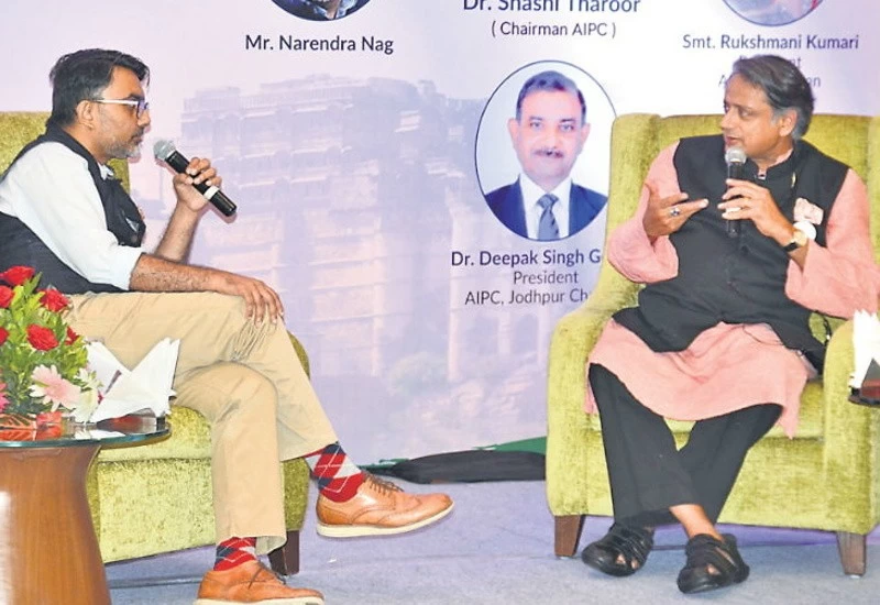 यह बात ऑल इंडिया प्रोफेशनल्स कांग्रेस (एआईपीसी) के जोधपुर चैप्टर के ‘इंडिया इन क्राइसिस’ विषय पर हुए संवाद में ऑल इंडिया प्रोफेशनल्स कांग्रेस के राष्ट्रीय अध्यक्ष डॉ. शशि थरूर ने कही। उन्होंने वरिष्ठ पत्रकार नरेंद्र नाग से संवाद के दौरान कहा कि देश में चल रहे आर्थिक, सामाजिक, वैचारिक, सांस्कृतिक संकट के बारे में खुलकर विचार रखें। समारोह के दौरान एआईपीसी की प्रदेश अध्यक्ष रुक्समणि कुमारी, जोधपुर चैप्टर के अध्यक्ष दीपकसिंह गहलोत, पीसीसी महासचिव वैभव गहलोत ने भी विचार व्यक्त किए। समारोह में पूर्व सांसद बद्रीराम जाखड़, शहर विधायक मनीषा पंवार, बाल संरक्षण आयोग अध्यक्ष संगीता बेनीवाल, राजसिको के पूर्व अध्यक्ष सुनील परिहार सहित शहर के प्रोफेशनल्स मौजूद थे। इस दौरान थरूर ने चुनिन्दा श्रोताओं के प्रश्नों के जवाब भी दिए।