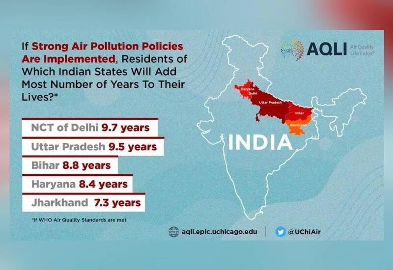 नई दिल्ली: भारत में वायु प्रदूषण के स्तर में समय के साथ अलग-अलग राज्यों में बढ़ रहा है। महाराष्ट्र तथा मध्य प्रदेश में यह स्तर इतना बढ़ गया है कि औसतन एक व्यक्ति की जीवन प्रत्याशा में 2.5 से 2.9 वर्ष तक की अतिरिक्त गिरावट आ रही है। अगर प्रदूषण को लेकर हम सजग नहीं हुए तो जीवन प्रत्याशा में नौ साल तक की कमी हो सकती है। एक नयी रिपोर्ट में प्रदूषण के परिणाम को लेकर आगाह किया गया है। शिकागो विश्वविद्यालय के वायु गुणवत्ता जीवन सूचकांक (AQLI) की रिपोर्ट में कहा गया है कि भारत दुनिया का सबसे प्रदूषित देश है।