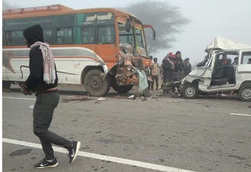 चूरू. राजस्थान के चूरू जिले में गुरुवार सुबह एक तेज रफ्तार बस और वैन की आमने-सामने टक्कर हो गई। हादसे में वैन सवार सभी 8 लोगों ने मौके पर ही दम तोड़ दिया। सभी मृतक बीकानेर के रहने वाले थे। बस में सवार कुछ यात्री भी घायल हुए हैं। आशंका है कि सुबह घने कोहरे के कारण ओवरटेक करते वक्त बस ड्राइवर को सामने से आ रही वैन नजर नहीं आई।