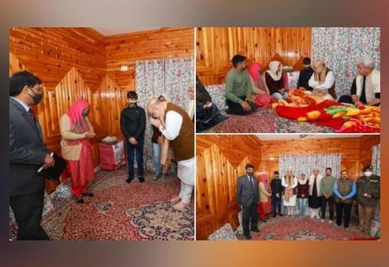 जम्मू कश्मीर के तीन दिवसीय दौरे पर आए शाह हवाई अड्डे से सीधा नौगाम गए. गृह मंत्रालय के एक अधिकारी ने कहा, ‘गृह मंत्री जम्मू कश्मीर पुलिस के निरीक्षक परवेज के घर गए जिनकी आतंकवादियों ने हत्या कर दी थी.’ अधिकारियों ने कहा कि शाह ने शहीद पुलिसकर्मी के परिजन को सांत्वना दी. शहीद पुलिस अधिकारी की विधवा फातिमा अख्तर को शाह ने अनुकंपा के आधार पर सरकारी नौकरी के दस्तावेज सौंपे.