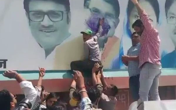 राजसमंद में चुनाव प्रचार के दौरान महाराणा प्रताप पर विवादित बयान देकर नेता प्रतिपक्ष गुलाबचंद कटारिया घिर गए हैं। कटारिया के खिलाफ करणी सेना सहित कई राजपूत संगठनों ने मोर्चा खोल दिया है। करणी सेना से जुड़े युवाओं ने भाजपा मुख्यालय पर पहुंचकर जमकर नारेबाजी की और गुलाबचंद कटारिया के होर्डिंग पर स्याही पोत दी। करणीा सेना ने कटारिया के मुंह पर कालिख पोतने की चेतावनी भी दी है।