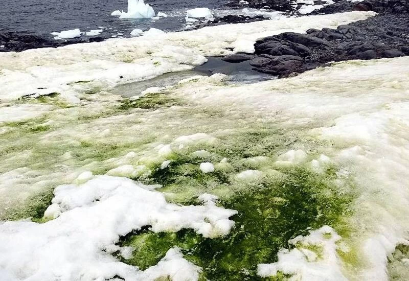 बर्फ के प्रमाण मिले हैं। वैज्ञानिकों ने बताया कि अंटार्कटिका के बर्फ का हरे रंग में बदलने का कारण एक समुद्री एल्गी है। जिसकी वजह से अलग-अलग जगहों पर ऐसे रंग देखने को मिल रहे हैं।
