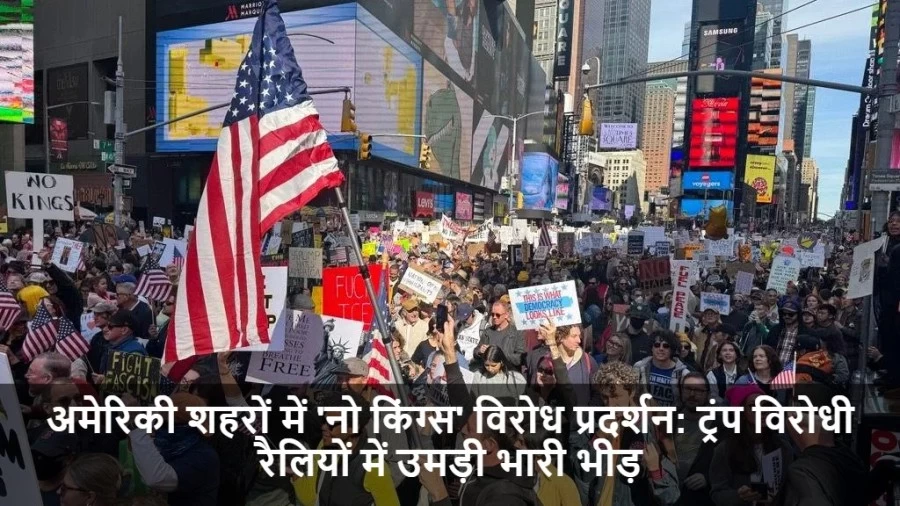 शनिवार को संयुक्त राज्य अमेरिका के कई शहरों में राष्ट्रपति डोनाल्ड ट्रंप की नीतियों के खिलाफ विशाल विरोध प्रदर्शन हुए, जिसमें न्यूयॉर्क, वाशिंगटन डीसी, शिकागो, मियामी और लॉस एंजिल्स में 'नो किंग्स' रैलियां निकाली गईं। न्यूयॉर्क शहर के प्रतिष्ठित टाइम्स स्क्वायर में हजारों लोग एकत्र हुए, जिससे सड़कें और सबवे के प्रवेश द्वार भीड़ से भर गए और प्रदर्शनकारियों ने "राजशाही नहीं, लोकतंत्र" और "संविधान वैकल्पिक नहीं है" जैसे शक्तिशाली नारे वाले पोस्टर उठाए, जो मौजूदा प्रशासन को लेकर गहरी चिंताओं को दर्शाते हैं।