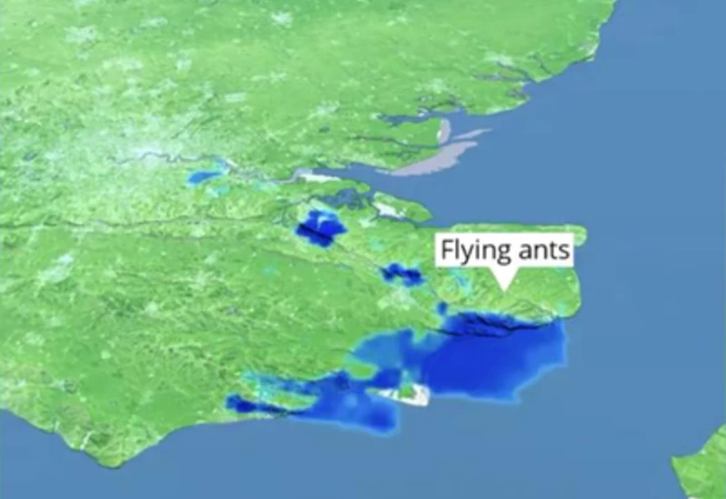 मौसम विभाग ने पाया कि चींटियों का झुंड इतना बड़ा था कि गलती से उसे बारिश के बादल समझा गया। मौसम विभाग ने ट्वीट किया, ‘लंदन, केंट और ससेक्स में बारिश की संभावना नहीं है लेकिन हमारा रेडार ऐसा बता रहा है। साउथ ईस्ट में रेडार ने उड़ते चींटियों के झुंड को देखा। गर्मी के मौसम में अक्सर चींटियां बड़ी संख्या में आसमान में इकट्ठा होती हैं।’