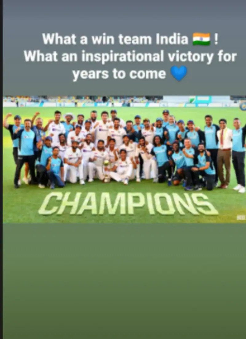 सदी के महान और खेल प्रेमी अमिताभ बच्चन ने ट्वीट किया है कि इंडिया इंडिया ... ने ऑस्ट्रेलिया को टक्कर दी है। टीम इंडिया को जीत की बधाई।हमारी टीम के लिए एक पूरी तरह से शानदार जीत !!! गेंद द्वारा इसे प्रकट करने के लिए पूरी रात लगे रहे। अब थोड़ा आराम से सोएंगे और इस ऐतिहासिक क्षण का स्वाद चखेंगे। हमारे सभी लड़कों को प्यार और इस जीत के माध्यम से हमें सत्ता में लाने के लिए उनकी लचीलापन की बहुत प्रशंसा करते हैं। चक दे इंडिया!बॉलीवुड के बादशाह शाहरुख खान ने ट्वीट किया है कि हमारी टीम के लिए क्या शानदार जीत है। मैंने पूरी रात मैच देखा है और अब मैं शांति से सोने जा रहा हूं। चक दे इंडिया।आपको बता दें कि ऑस्ट्रेलिया ने पहली पारी में 369 रन बनाए थे, जिसके जवाब में भारत पहली पारी में केवल 336 रन बना सका। इसके बाद, दूसरी पारी में ऑस्ट्रेलिया ने 294 रन बनाए। भारत के सामने 328 रनों की कठिन चुनौती थी, टीम को जीत दिलाने के बाद, भारत ने चुनौती से किनारा कर लिया और देश के लिए एक अंतर बना।
