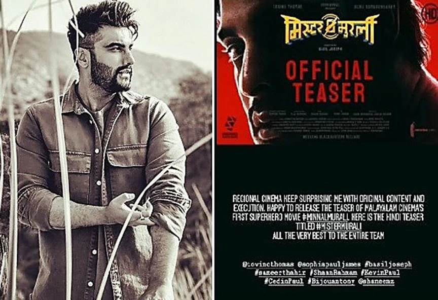 अर्जुन कपूर ने फिल्म 'मिन्नल मुरली' के हिंदी टीजर 'मिस्टर मुरली' को इंस्टा स्टोरी पर शेयर किया और लिखा,' रिजनल सिनेमा हमेशा मुझे अपने ओरिजनल कंटेंट और एक्सीक्यूशन से सप्रराइज करते हैं। मलयालम फिल्म इंडस्ट्री की पहली सुपरहीरो फिल्म 'मिन्नल मुरली' के टीजर रिलीज होने पर बहुत खुश हूं। आपके साथ इस फिल्म का हिंदी टीजर जिसका टाइटल हैं 'मिस्टर मुरली' शेयर कर रहा हूं।' इसके साथ ही अर्जुन ने एंटायर टीम को फिल्म के लिए आॅल द बेस्ट कहा और सभी कलाकारों को टैग किया।